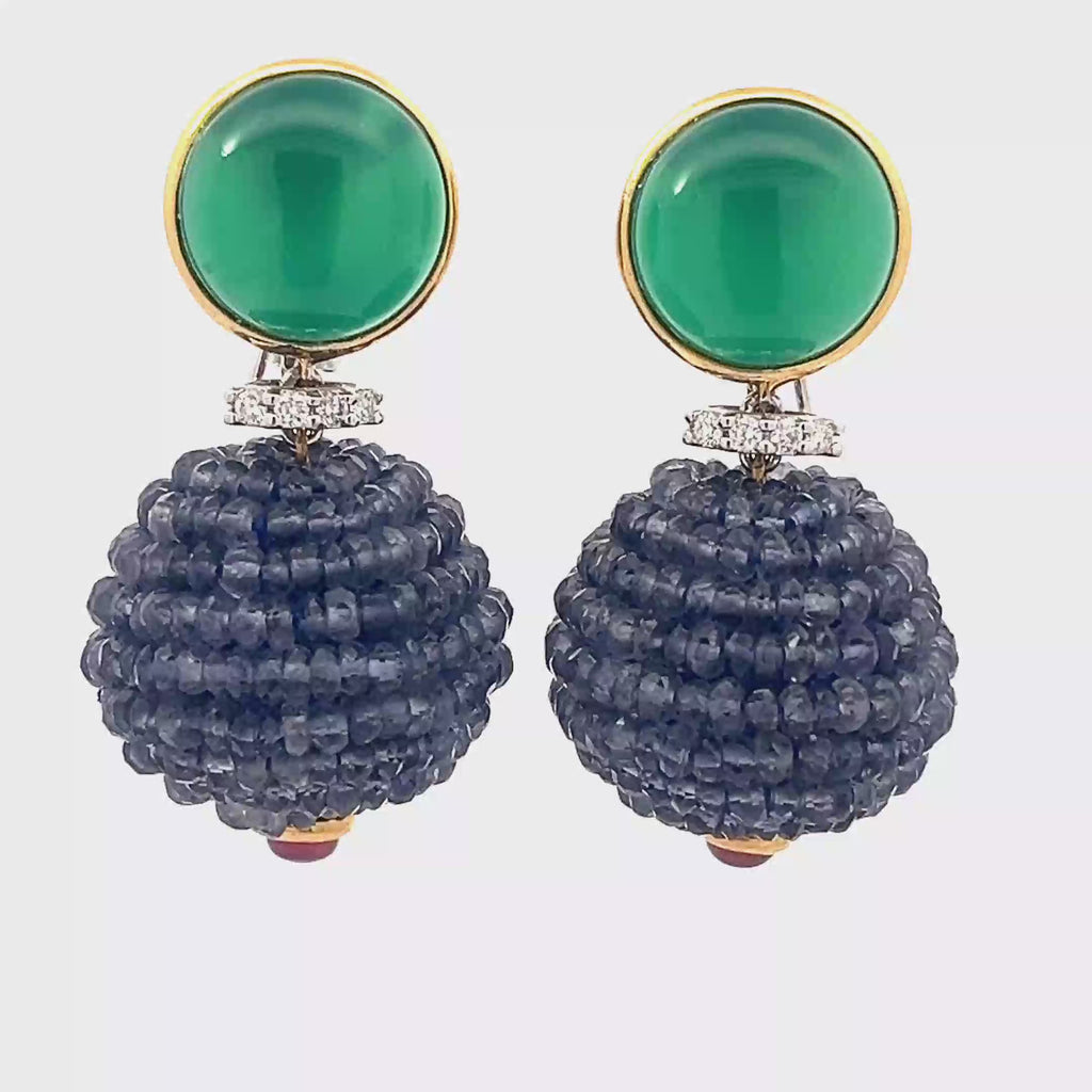 Antique Agathe & Sapphire Earrings